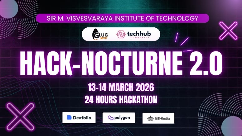 Welcome to Hack-Nocturne 2026 — the second flagship innovation sprint engineered by the TechHub Community and GLUG MVIT, the powerhouse tech collectives of Sir M. Visvesvaraya Institute of Technology.